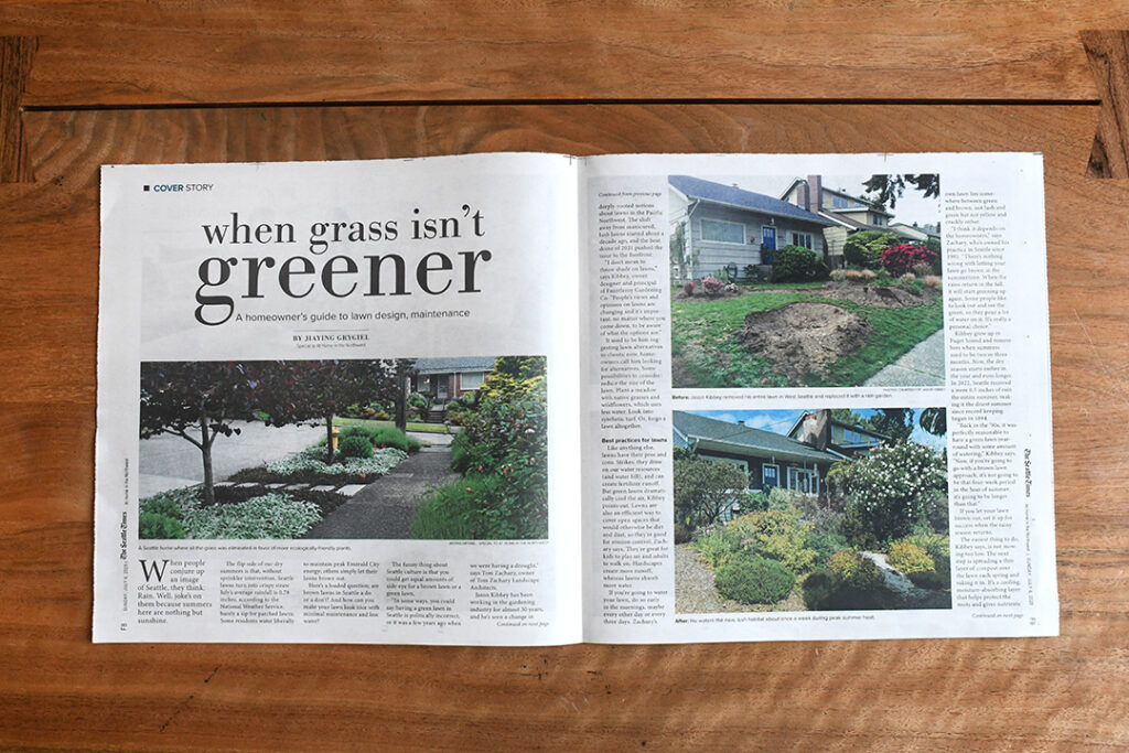 Are brown lawns a do or don’t? In Seattle, it’s a do… with caveats. I wrote and photographed this week’s Seattle Times At Home cover story about best practices for lawns (including setting your lawn up for success when the rainy season starts again) or even forgoing a lawn altogether.