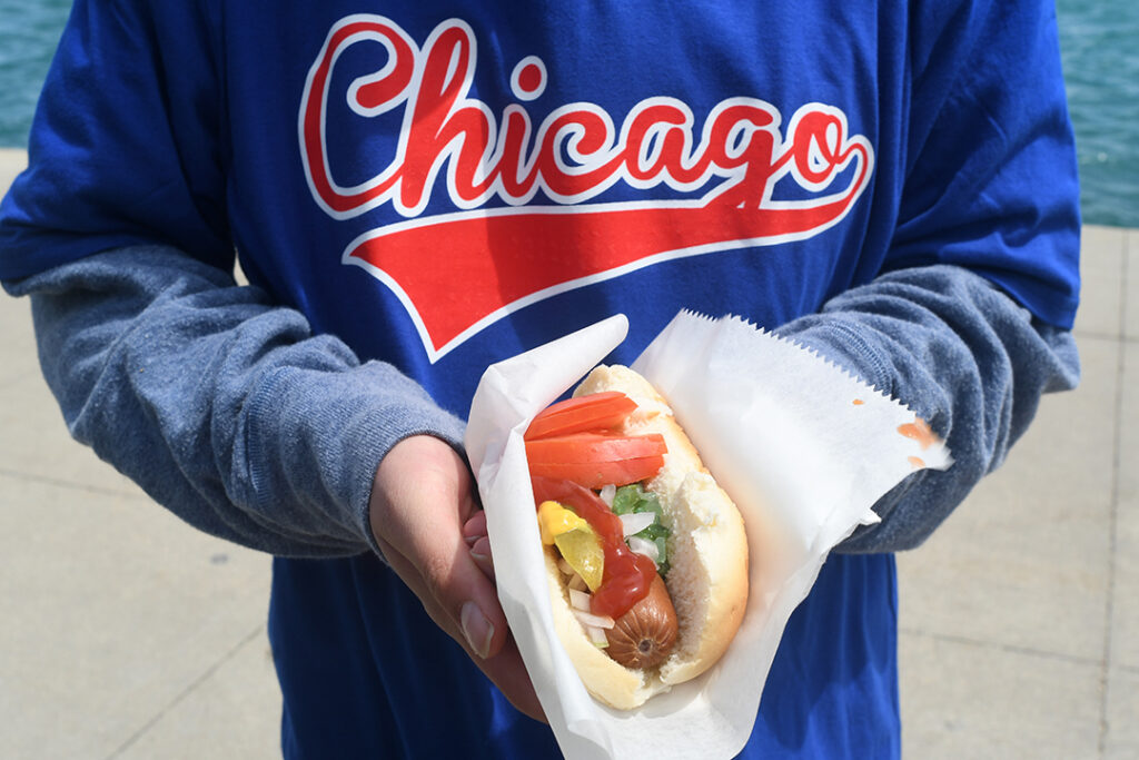 I can’t even look at the Seattle Aquarium anymore. The Shedd has belugas and dolphins and a whole tank of sharks! And they’re in a land-locked state!The mystery star of the daily show turned out to be dolphins!! We totally lucked out.The aquarium building is stunning. Look up, there are tiny sea creatures in the ceiling coffers.This wall sconce, composed of a snail and manta. Loved these details.Bought a hot dog from a street vendor and she put ketchup on it?? Isn’t that illegal?Wrigley Field for some old-timey baseball. $9 tickets!The combination of being high up and in the shade meant we were FREEZING. It was a good 30 degrees warmer in the sun.