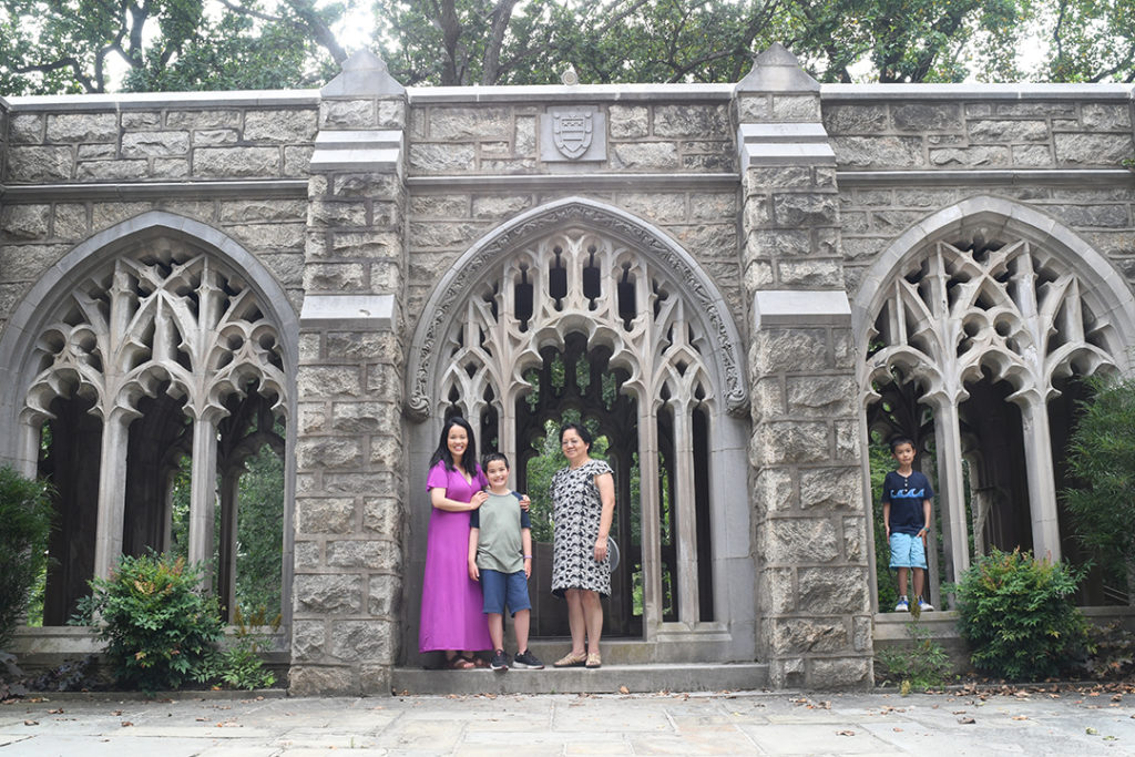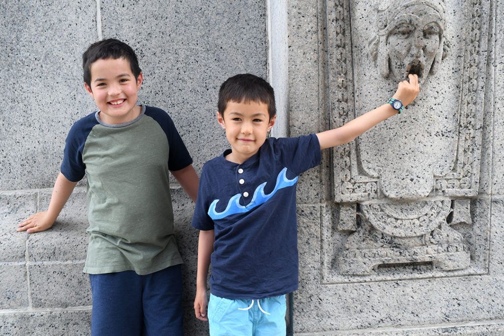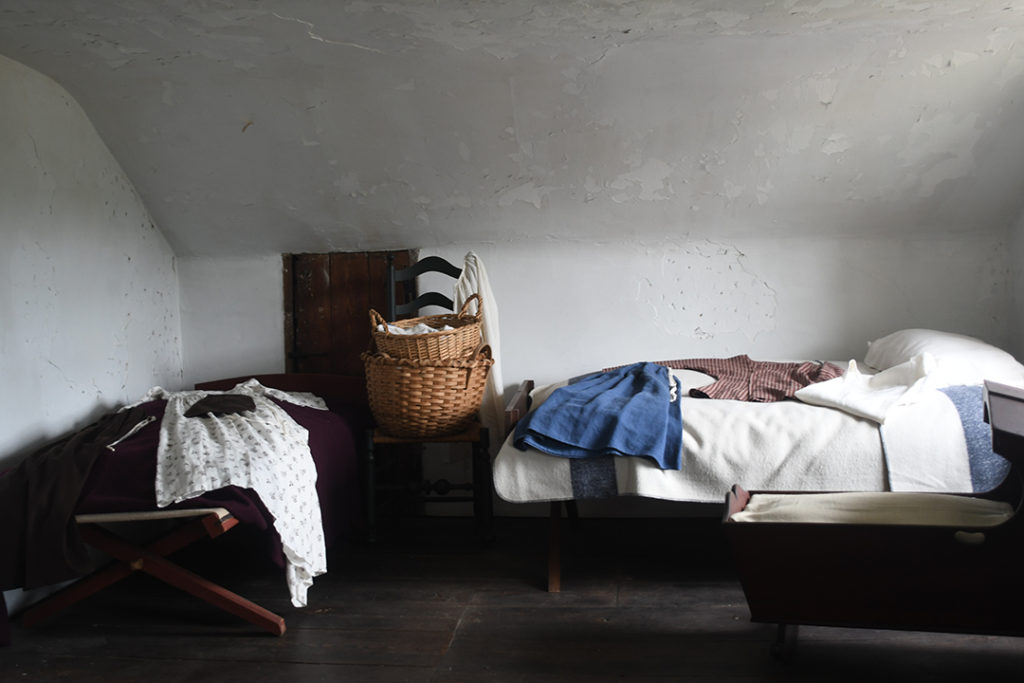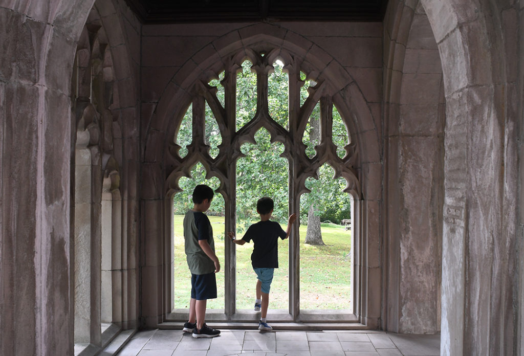 General Washington’s headquarters in Valley Forge. He paid the owner rent, instead of seizing it like British would have. 25 people crowded into this 3-bedroom home, including a baby!Memorial Arch dedicated to the Constitutional Army.Detail of a stone face on the Memorial Arch. It doesn’t look too happy.The kitchen in Washington’s headquarters is separated from the main house. No sink, no dishwasher, no stovetop, no oven.We played with Lincoln logs in the visitor’s center, then saw actual log huts on the grounds. These particular huts were used by General Washington’s lifeguards, aka the Secret Service.The Washington Memorial Chapel is a working church today! So pretty.